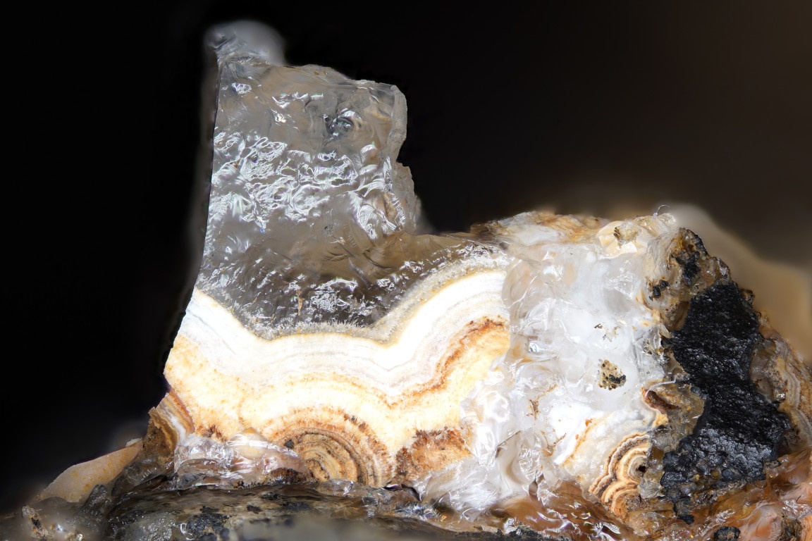 Üvegopal ismeretlen ásványon, sajat gyütes 2024. Képszélesség: 4 mm