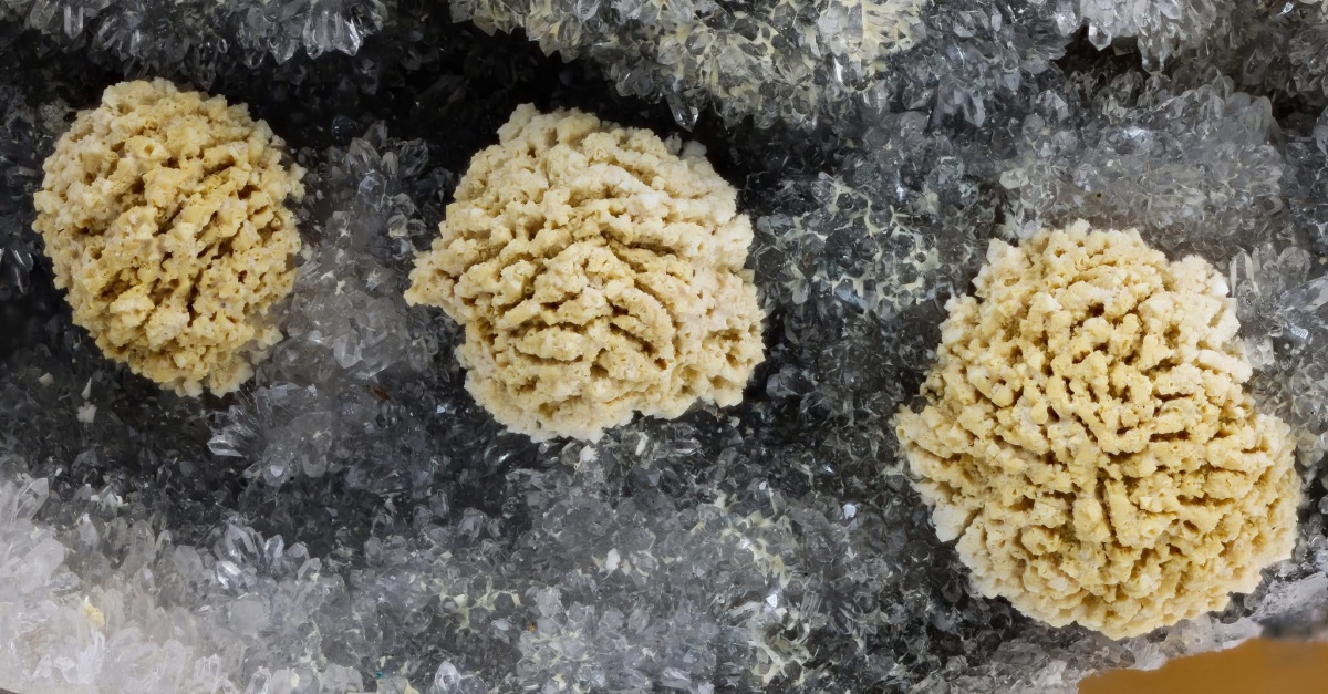 Crandallit aggregátumok kvarcon. Képszélesség: 7,7 mm