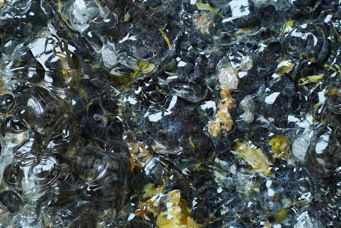 | Manganoxidok es Nontronit Üvegopál alatt. Kép szélessége 4 cm, sajat gyűjtemény, 2023. | |
