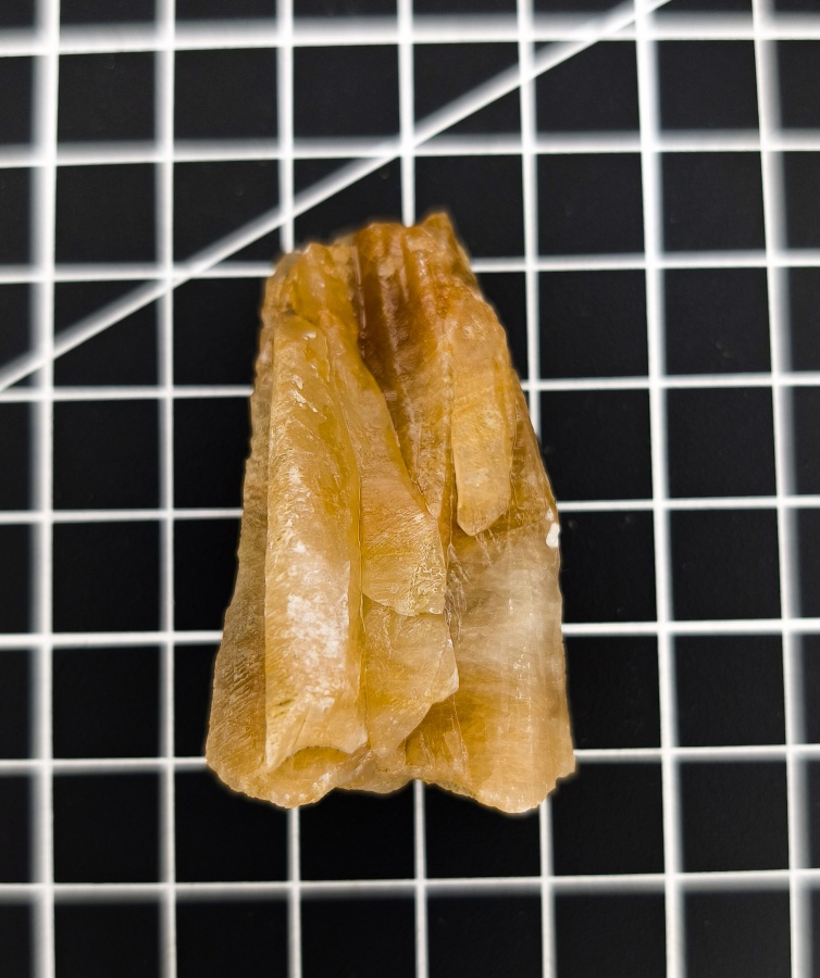 | Egy egész szép, 5 centis kalcitdarab, a 10. árok peremén hevert a földön. Tóriumot gamma spektrum alapján nem tartalmaz (a környező részen magas háttérsugárzás miatt mértem meg a darabot). 2025. évi gyűjtés. | |